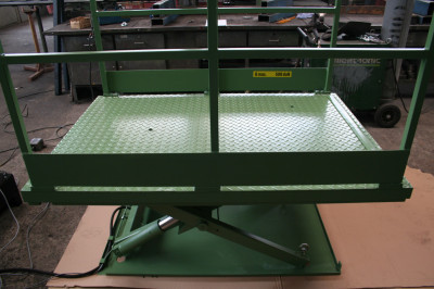 Hebebühne mit Geländer und Abrollsicherung. |