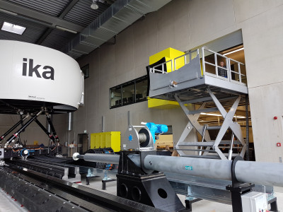 Doppelscheren-Hebebühne zum Beschicken eines Simulators. |
