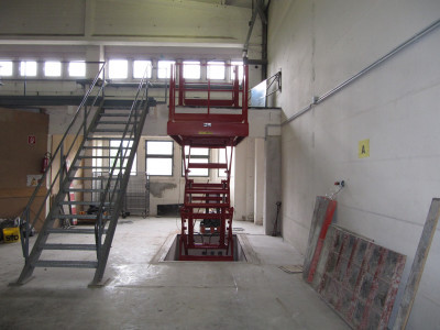 Doppelscheren-Hebebühne, eingesetzt zur Beschickung einer zweiten Ebene |