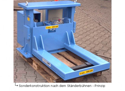 Die individuellen Problemlösungen erstrecken sich von Neigegeräten zum Kippen von Gitterboxpaletten über Kipp-Vorrichtungen für Gasflaschen bis zu Wendevorrichtungen. Diese Geräte bringen die Ware in die zur Weiterverarbeitung gewünschte Stellung.