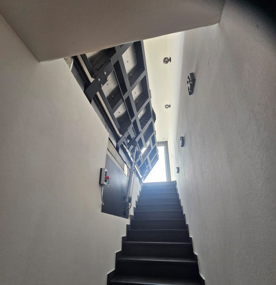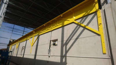 Hebebühne zum Ausheben einer Fassaden-Befahranlage. |