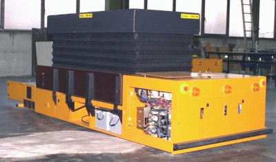 Mobiles Fahrzeug zum Transport von Rumpfteilen in der Flugzeugindustrie. |